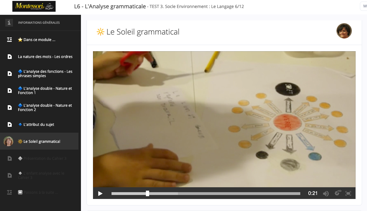 Nous ajoutons en permanence du contenu pertinent à nos formations à distance. Murielle Lefebvre est consultante pédagogique sur le terrain en permanence et souhaite donc que la formation soit actuelle et vivante. C’est ce qu’elle partage sur ce LMS (Learning Management System), fruit de ses 24 ans d’expériences montessoriennes. Elle est également coach mental pour accompagner les apprenants, de façon holistique.