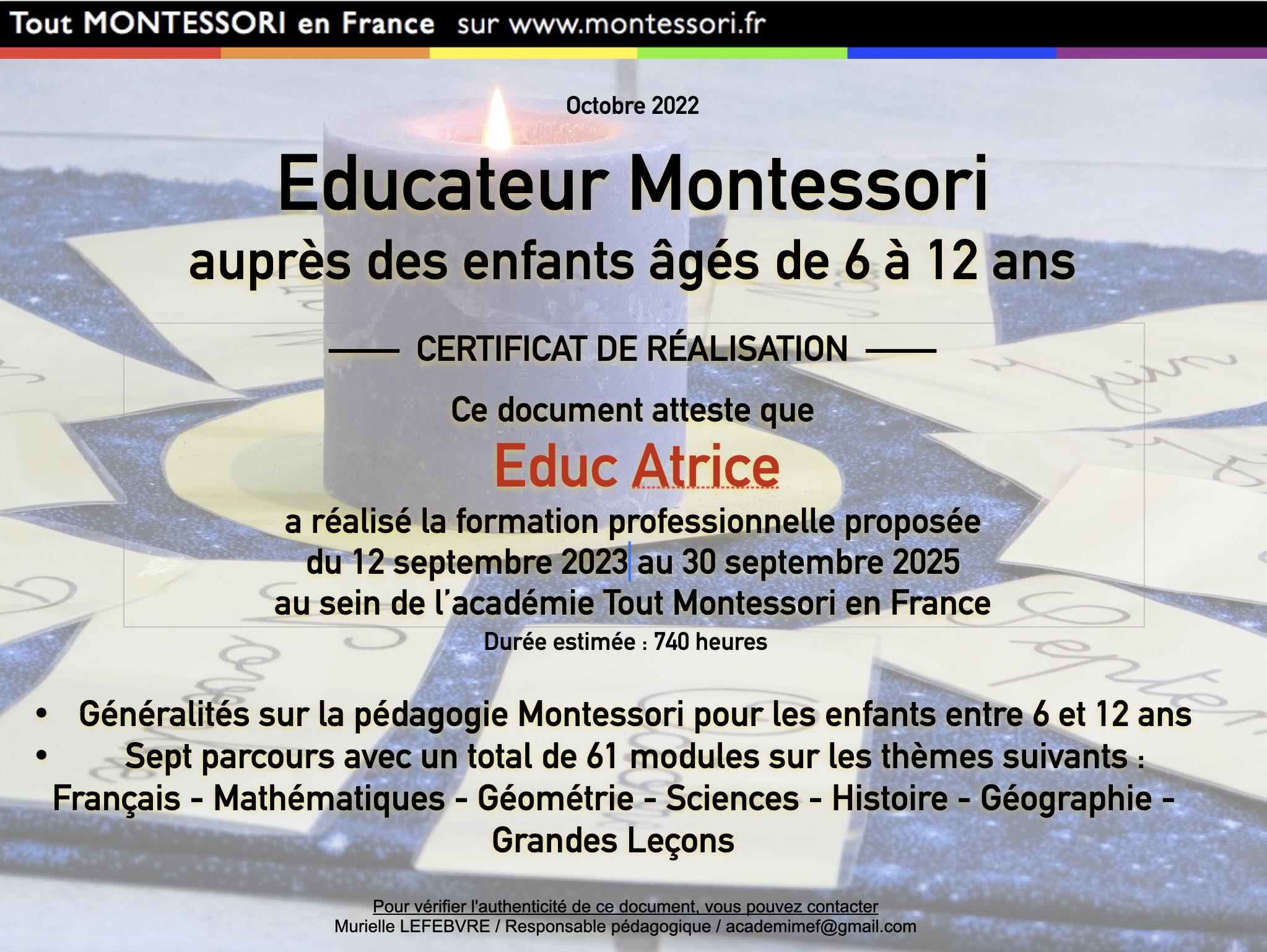 Toutefois, nous sommes conscients que notre offre et notre niveau de prestations ne seront jamais assez convaincants pour certaines personnes. Et, bien que nous mettions en avant de nombreux exemples de nos contenus (voir à https://www.academiemontessori.fr/?page_id=999), certains et certaines se demanderont toujours si nos formations sont “réelles” ?
