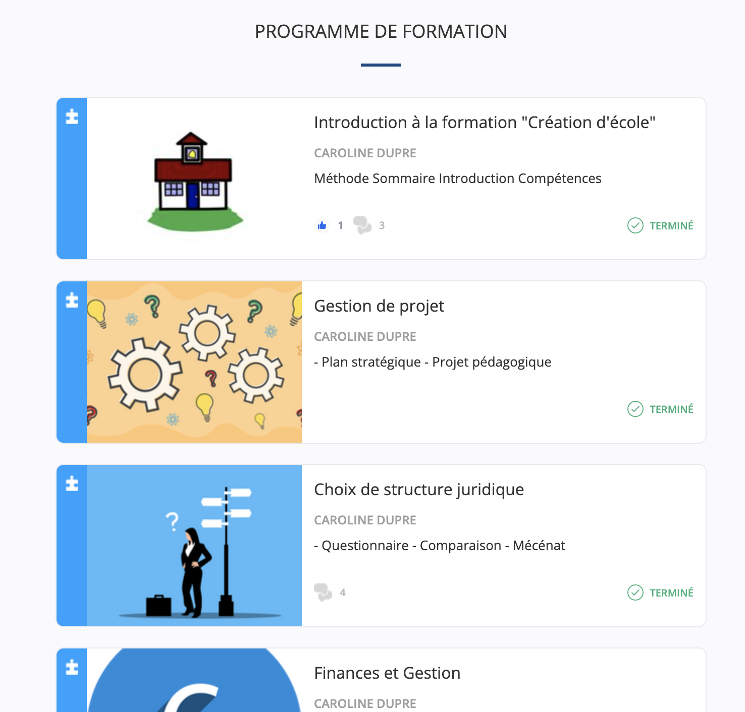 Le contenu de la formation online (la seule disponible en France actuellement) qui accompagne un porteur de projet à la création d’école privée d’enseignement du premier degré vient d’être mis à jour en avril 2022.